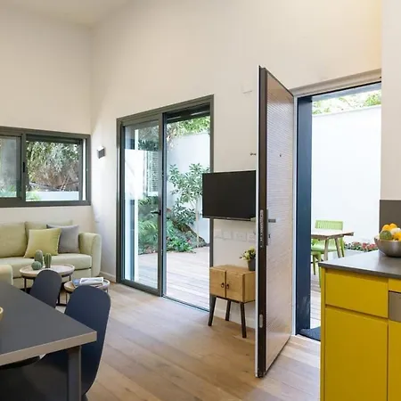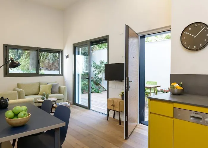 The spacious 1-bedroom Heart Of Iconic Sheinkin Street One Of A Kind Garden Apartment Surrounded By Magical Greenery includes a terrace and is located a mere 1.3 km from Habima Square.